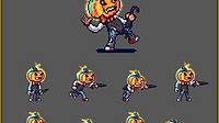 Released a new character for your 2d game. Halloween Theme :) PumkinHead Animations: Idle, Run, Jump, Shoot (3 directions), Throw, Transform dodge, Roll, Die...